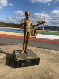 美しい空の下のサンジ像ー益城町においしい食事を