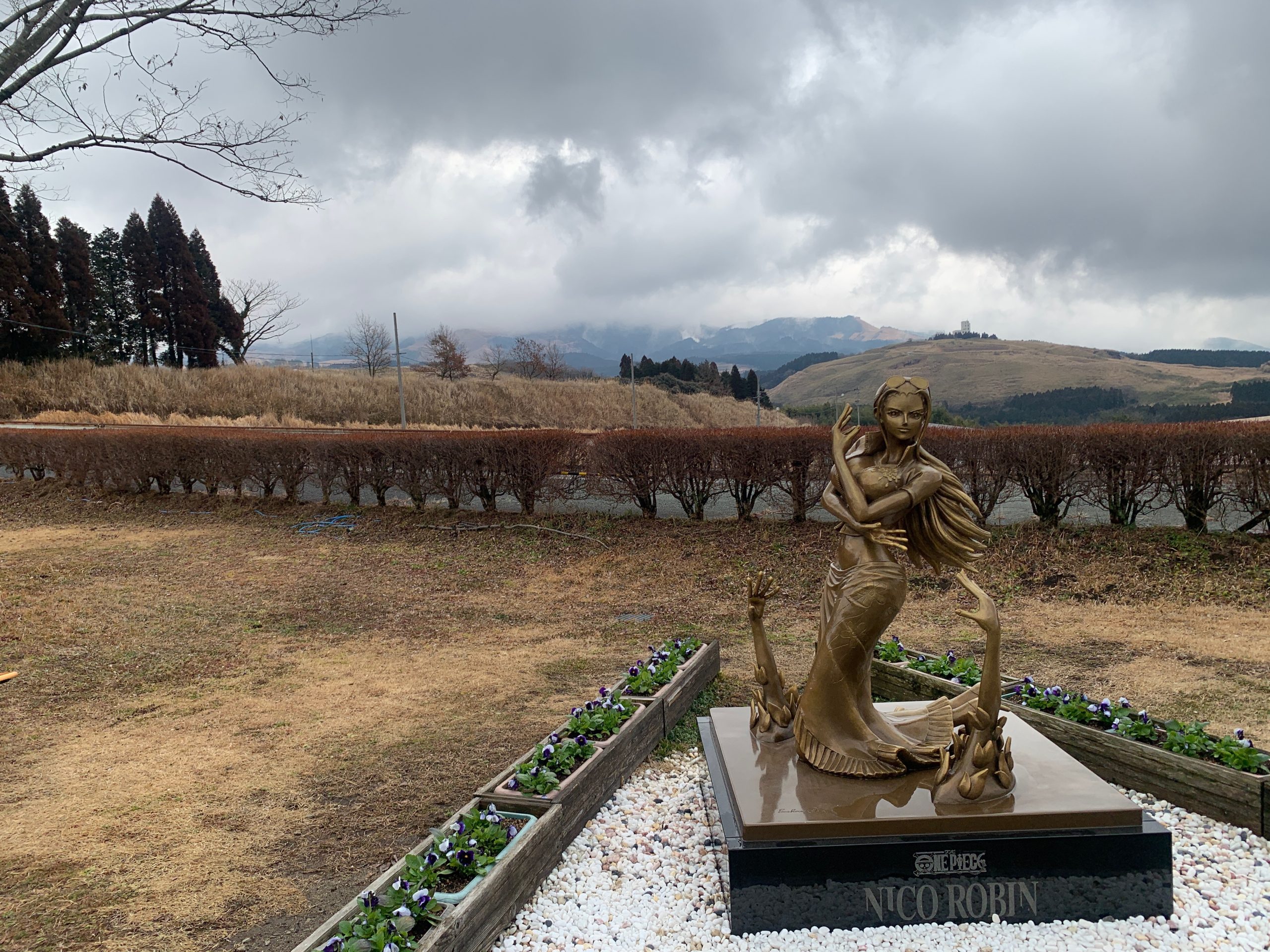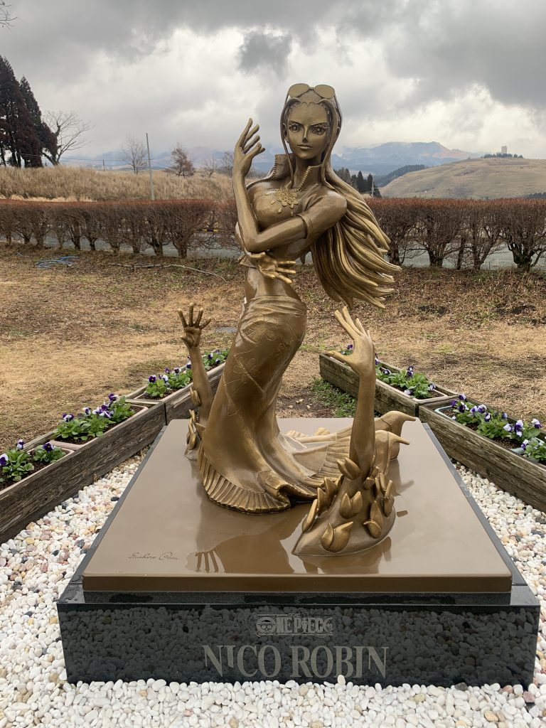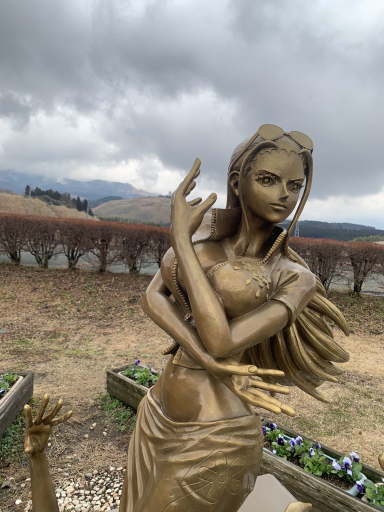 全国的な大雪が収まったというニュースが流れた一昨日、熊本の寒さも少し和らぎ、少し遠出をしたくなりました。部屋にこもっていた数日の反動ですね🤗 そこで、ワンピースの「ニコ・ロビン」像を見に行くことにしました。阿蘇の旧東海大学キャンパスに設置されていますが、我が家からは車で50分の距離で、ドライブにも良い距離です。